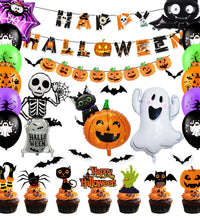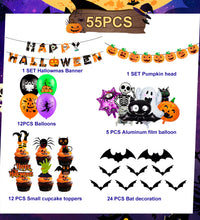 Halloween Party Supplies, 55 Pcs Halloween Party Kit-Happy Halloween Banner Balloons Cake Topper etc Happy Halloween Decorations