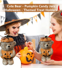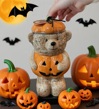 Bear-Shaped Halloween Cookie Jar with Lid - Multi-Purpose Decorative Storage for Candy, Kitchen Supplies, or Farmhouse Style