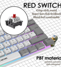 【Red Switch】This is a truly perfect mechanical keyboard. Compared with other switch, the red switch feels lighter. Provide you with excellent, sensitive and responsive click-through tactile feedback. There is no sense of passing when hitting, straight up and down, the trigger key travel is 2.0mm, it is easier to hit, and it can well meet the needs of games and typing.