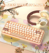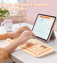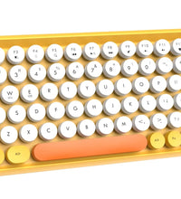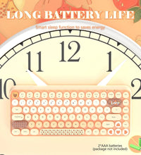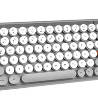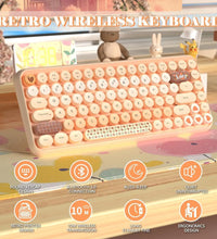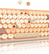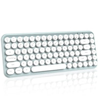 ❤Compact & Fashion Bluetooth Keyboard: This Bluetooth keyboard has 84 round keys. It is compact and easy to carry. The fashion shape is inspired by the retro elegant typewriter shape, the unique round keycap. Just press FN + C keys to enter Bluetooth mode.