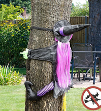 Cute Witch Crashing into Tree Decor Outd: Witch Flying Prop