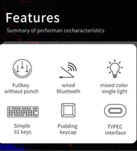 STK61 Rainbow Backlit Keyboard BT 3.0 +Type-c Dual-Mode Mechanical Gaming Keyboard for los Android Win Mobil Tablets Notebook